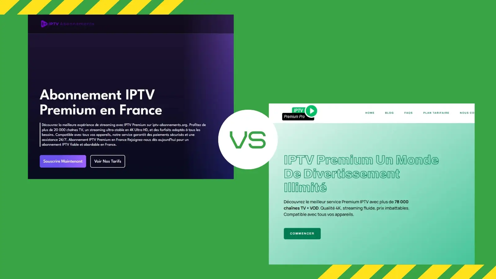 Home»Comparaisons IPTV»Comparaison Positive : iptv-premium-pro.com vs iptv-abonnements.org – Deux Fournisseurs IPTV d’Excellence en France pour 2025
